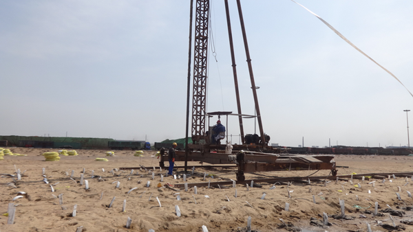 本工程于2017年3月13日开工,2017年����� �������Ƴ������������ �������Ƴ������������ �������Ƴ������������ �������Ƴ�������9月17日竣工,历时191天,实际施工时����� �������Ƴ������������ �������Ƴ������������ �������Ƴ������������ �������Ƴ�������间为170天。本次施工地基����� �������Ƴ������������ �������Ƴ������������ �������Ƴ������������ �������Ƴ�������处理主要内容为大面积真空预压处理,施工范����� �������Ƴ������������ �������Ƴ����������� �������Ƴ����������� �������Ƴ�������围为围堰前沿线后方290~680����� �������Ƴ������������ �������Ƴ������������ �������Ƴ������������ �������Ƴ�������m区域,地基处理面积91����� �������Ƴ������������ �������Ƴ������������ �������Ƴ����������� �������Ƴ�������425.72m2。主要工作包括场地砂垫层����� �������Ƴ������������ �������Ƴ������������ �������Ƴ������������ �������Ƴ�������的铺设、塑料排水板施工、����� �������Ƴ������������ �������Ƴ������������ �������Ƴ������������ �������Ƴ������打设密封墙、施工抽真空设备、进行真空预压处����� �������Ƴ������������ �������Ƴ������������ �������Ƴ������������ �������Ƴ�������理、卸载、泥浆墙换填砂、填土、场����� �������Ƴ������������ �������Ƴ������������ �������Ƴ������������ �������Ƴ�������地平整碾压等工作内容。