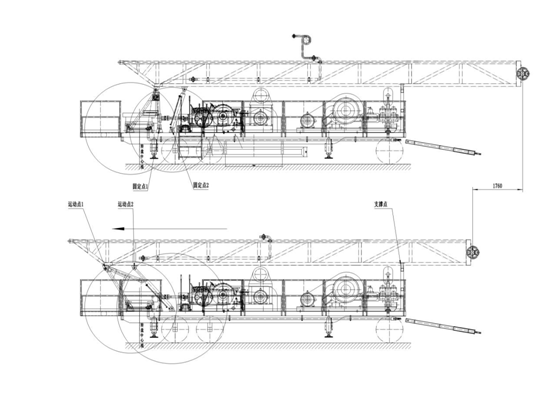 该型钻机钻塔通过液压起塔油缸可����� �������Ƴ������������ �������Ƴ����������� �������Ƴ������������ �������Ƴ�������整体横向移动1760mm,使����� �������Ƴ������������ �������Ƴ����������� �������Ƴ������������ �������Ƴ�������得钻机在移动和运输状态时布局均����� �������Ƴ������������ �������Ƴ������������ �������Ƴ������������ �������Ƴ�������匀,成功解决了拖车钻机钻塔“前����� �������Ƴ����������� �������Ƴ����������� �������Ƴ����������� �������Ƴ������短后长”的弊病。该型水井钻机转盘使����� �������Ƴ����������� �������Ƴ������������ �������Ƴ����������� �������Ƴ�������用∅670mm通径转盘,转盘输入轴连接盘按J����� �������Ƴ������������ �������Ƴ������������ �������Ƴ������������ �������Ƴ������N162万向轴连接尺寸加工,带����� �������Ƴ������������ �������Ƴ������������ �������Ƴ������������ �������Ƴ�������液压活门机构,底盘两侧安装栅格网底����� �������Ƴ������������ �������Ƴ������������ �������Ƴ������������ �������Ƴ�������板。井口活门采用液压驱动,在井����� �������Ƴ������������ �������Ƴ������������ �������Ƴ������������ �������Ƴ�������口活门上安装两个开合油缸,推动井口活����� �������Ƴ������������ �������Ƴ������������ �������Ƴ������������ �������Ƴ�������门开合,有效降低了操作者的����� �������Ƴ������������ �������Ƴ������������ �������Ƴ������������ �������Ƴ�������劳动强度,使用方便可靠。