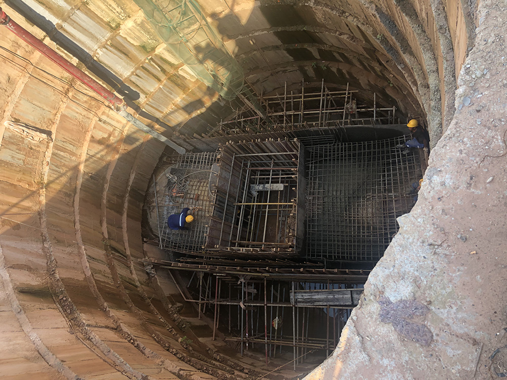 1)竖井部分:1#排水管中����� �������Ƴ������������ �������Ƴ������������ �������Ƴ������������ �������Ƴ�������的1#工作井,2#排水管中的4#、5#����� �������Ƴ������������ �������Ƴ����������� �������Ƴ������������ �������Ƴ�������、6#工作井和5#、6#接收����� �������Ƴ������������ �������Ƴ������������ �������Ƴ������������ �������Ƴ�������井,共计4个工作井,2个接收井����� �������Ƴ������������ �������Ƴ������������ �������Ƴ������������ �������Ƴ�������。工作井外径尺寸为10500mm,接收井����� �������Ƴ������������ �������Ƴ������������ �������Ƴ����������� �������Ƴ�������外径尺寸9400mm。采用钢����� �������Ƴ������������ �������Ƴ����������� �������Ƴ����������� �������Ƴ�������筋混凝土浇筑而成。