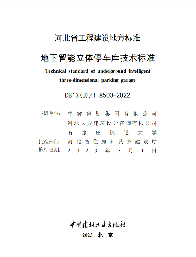 近日,我公司主编的河北省工程建设地方����� �������Ƴ������������ �������Ƴ������������ �������Ƴ����������� �������Ƴ�������标准《地下智能立体停车库技术标准》����� �������Ƴ������������ �������Ƴ������������ �������Ƴ������������ �������Ƴ������(DB13(J)/T 8500-2����� �������Ƴ������������ �������Ƴ����������� �������Ƴ������������ �������Ƴ�������022)、《污染场地岩土����� �������Ƴ������������ �������Ƴ������������ �������Ƴ������������ �������Ƴ�������工程勘察技术标准》(DB13(J)/T 8518����� �������Ƴ������������ �������Ƴ������������ �������Ƴ������������ �������Ƴ�������-2023)由河北省住房和城����� �������Ƴ����������� �������Ƴ������������ �������Ƴ������������ �������Ƴ�������乡建设厅正式发布,并印刷����� �������Ƴ����������� �������Ƴ������������ �������Ƴ������������ �������Ƴ�������出版发行,分别将自2023年5月1日和7月1日起����� �������Ƴ����������� �������Ƴ������������ �������Ƴ������������ �������Ƴ�������实施。