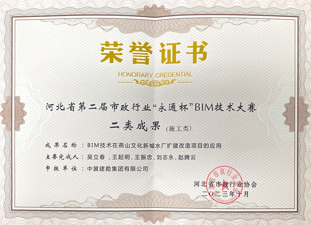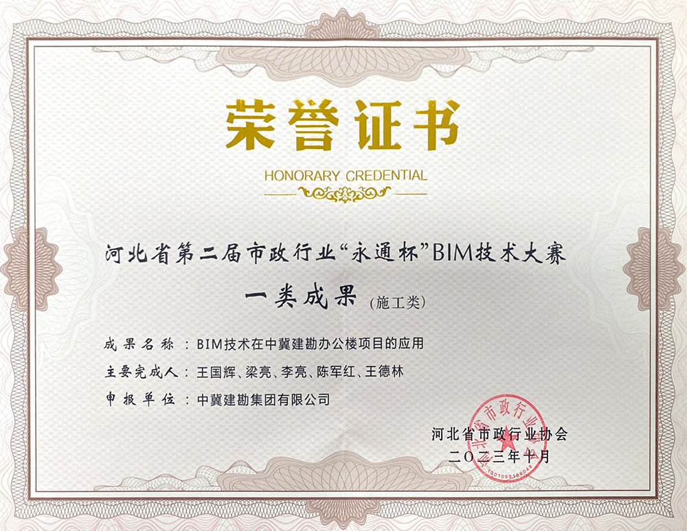 公司两项成果喜获河北省第二����� �������Ƴ������������ �������Ƴ������������ �������Ƴ������������ �������Ƴ�������届市政行业 “永通杯”BIM技术大赛奖