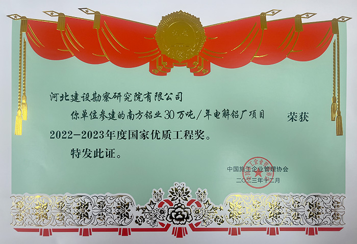 南方铝业30万吨/年电解铝厂项目荣获����� �������Ƴ������������ �������Ƴ������������ �������Ƴ������������ �������Ƴ������2022-2023年度国家优质工程奖