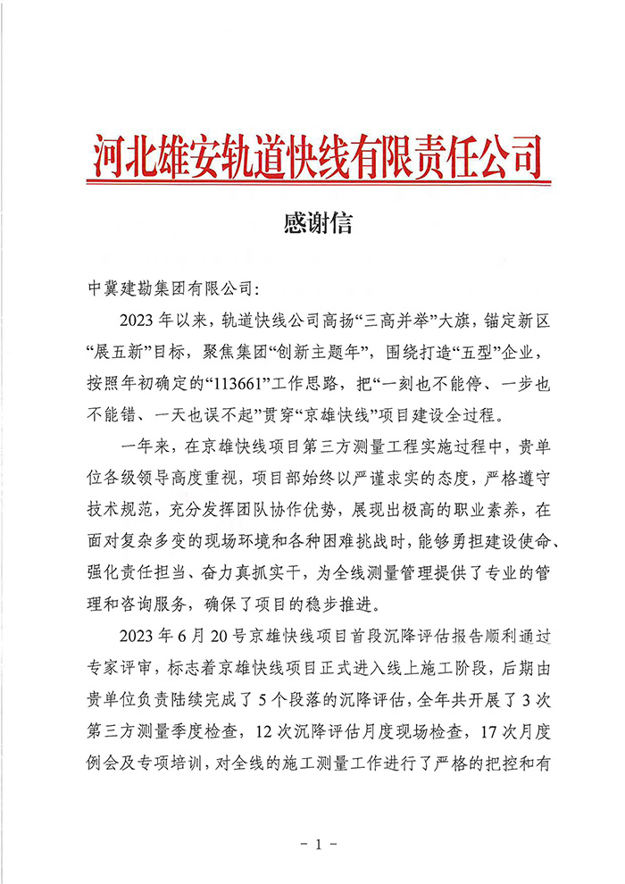 近期,公司陆续收到中����� �������Ƴ������������ �������Ƴ������������ �������Ƴ����������� �������Ƴ�������国雄安集团城市发展投资有限公����� �������Ƴ������������ �������Ƴ������������ �������Ƴ������������ �������Ƴ������司、河北雄安轨道快线有限责任公司、中国雄安集团生����� �������Ƴ������������ �������Ƴ������������ �������Ƴ������������ �������Ƴ�������态建设投资有限公司、中铁五局、����� �������Ƴ������������ �������Ƴ������������ �������Ƴ������������ �������Ƴ�������中铁十七局、郑州地铁集团、内蒙����� �������Ƴ������������ �������Ƴ������������ �������Ƴ������������ �������Ƴ�������古大唐国际克什克腾旗煤制天然气����� �������Ƴ����������� �������Ƴ����������� �������Ƴ������������ �������Ƴ�������电厂、大唐内蒙古多伦电厂等业主单位发����� �������Ƴ����������� �������Ƴ������������ �������Ƴ������������ �������Ƴ�������来的感谢信。我公司认真负责����� �������Ƴ������������ �������Ƴ������������ �������Ƴ����������� �������Ƴ�������、敢打能打硬仗的工作态度、顽强拼����� �������Ƴ����������� �������Ƴ������������ �������Ƴ������������ �������Ƴ������搏的施工风范和一心为业主服务的理念,赢得了业主的����� �������Ƴ������������ �������Ƴ������������ �������Ƴ������������ �������Ƴ�������高度认可和赞扬,特发来感谢信深����� �������Ƴ����������� �������Ƴ����������� �������Ƴ������������ �������Ƴ�������表感谢!